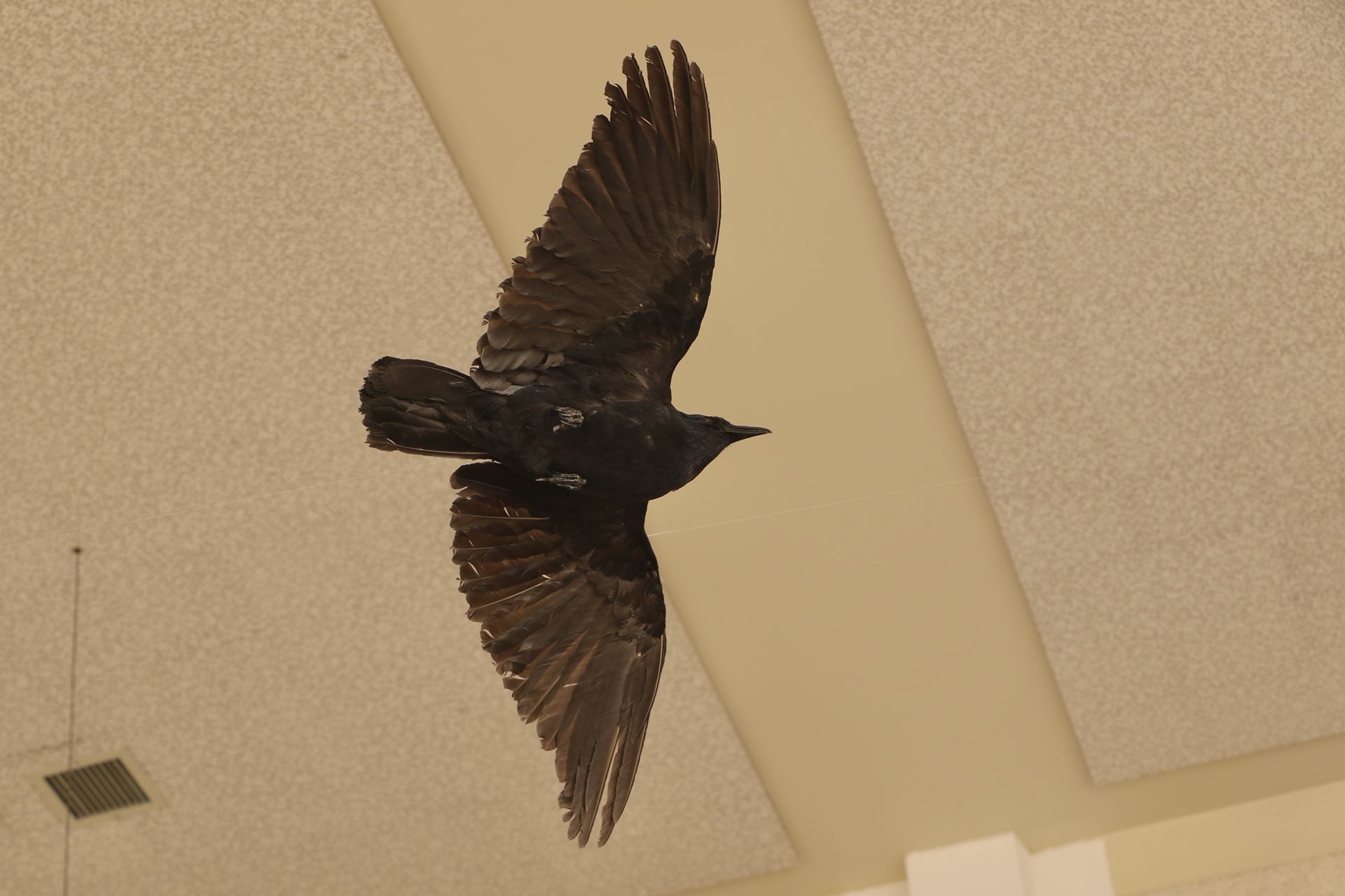 The rectangular footprint of a tractor trailer became my installation. Symbolically soaring above this bed of bottles were four black crow specimens, silently witnessing what is happening on the landscape below.