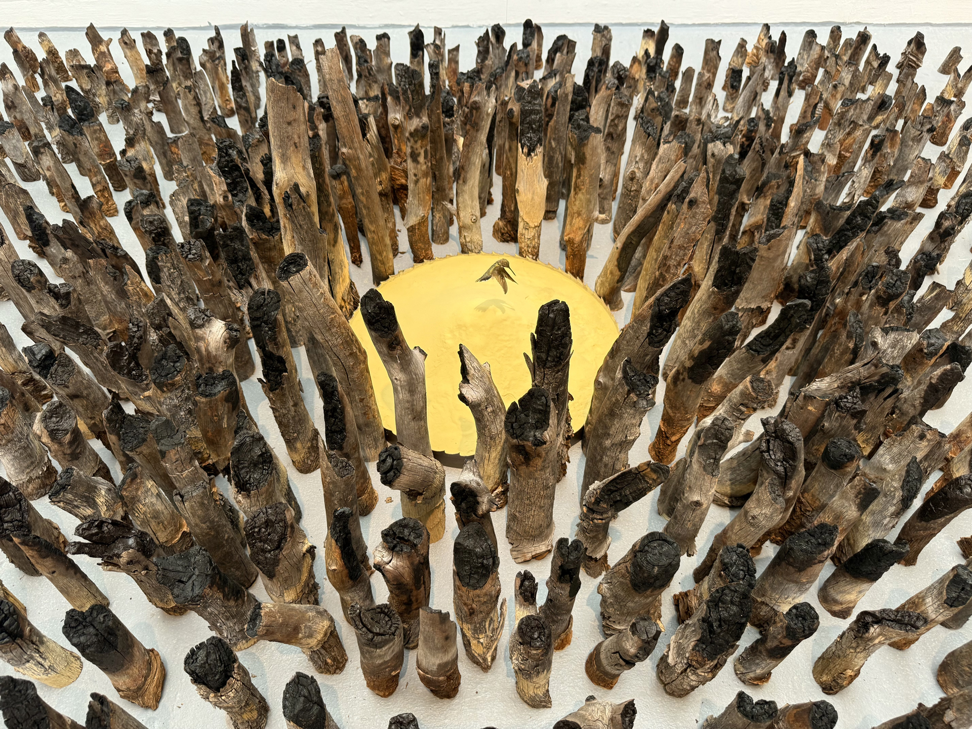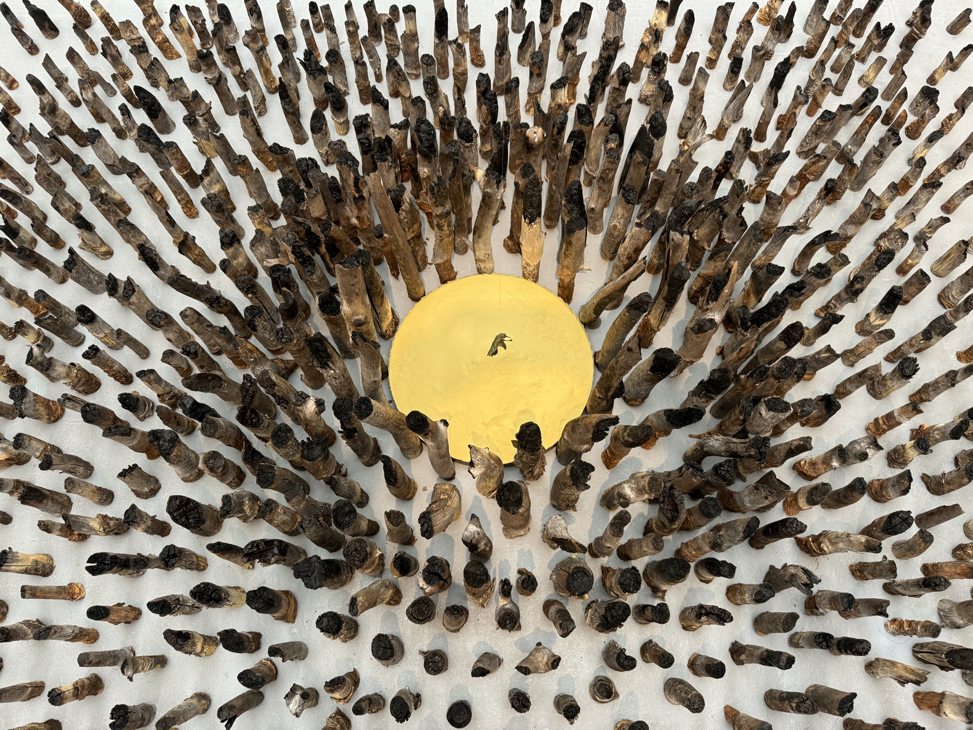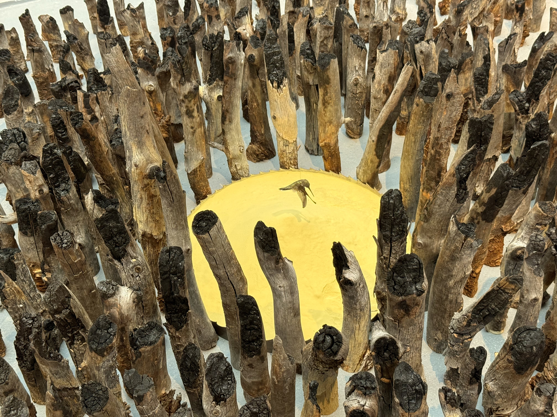 Materials: ponderosa pine limb attachments and pollen, mummified hummingbird