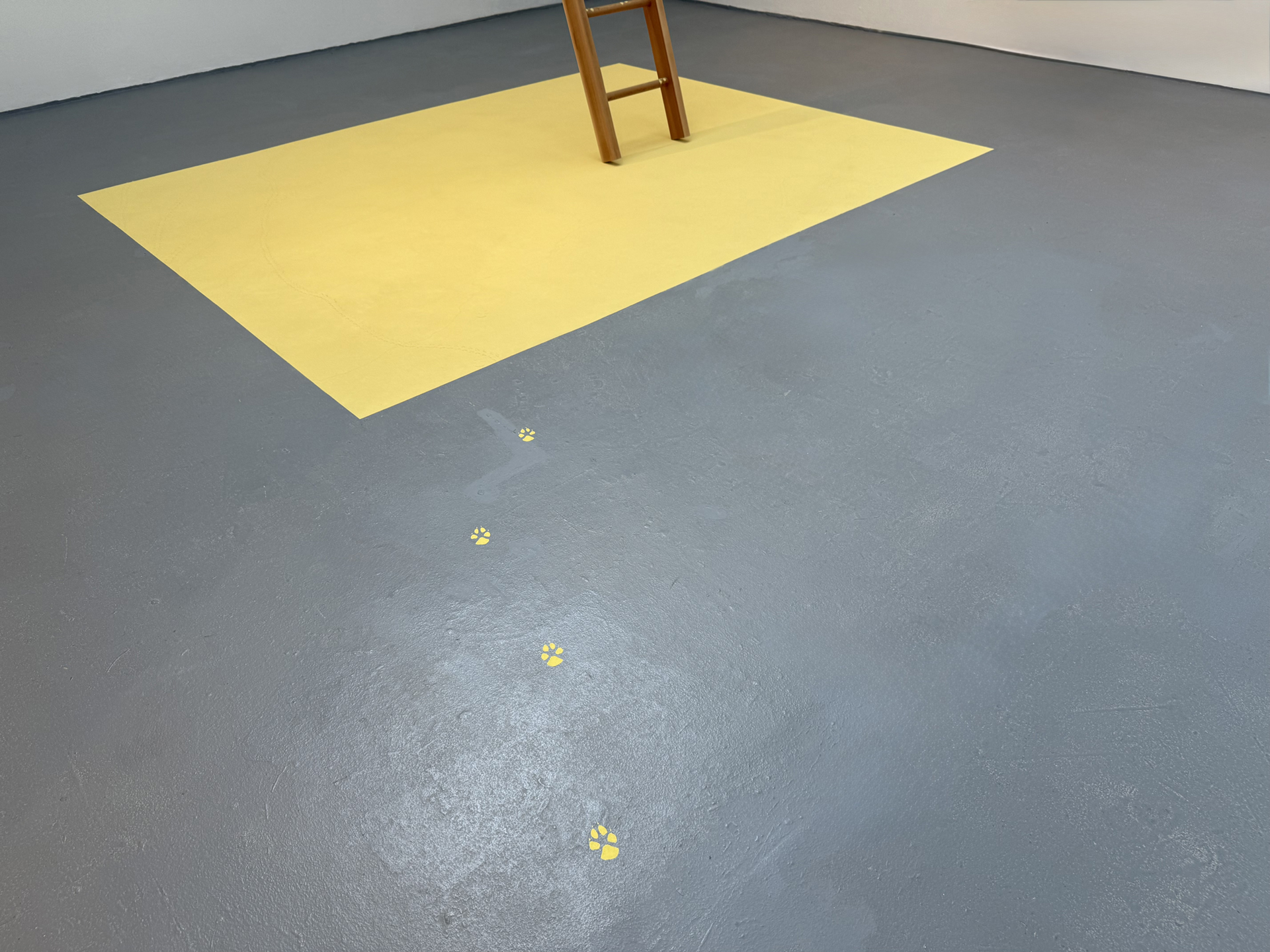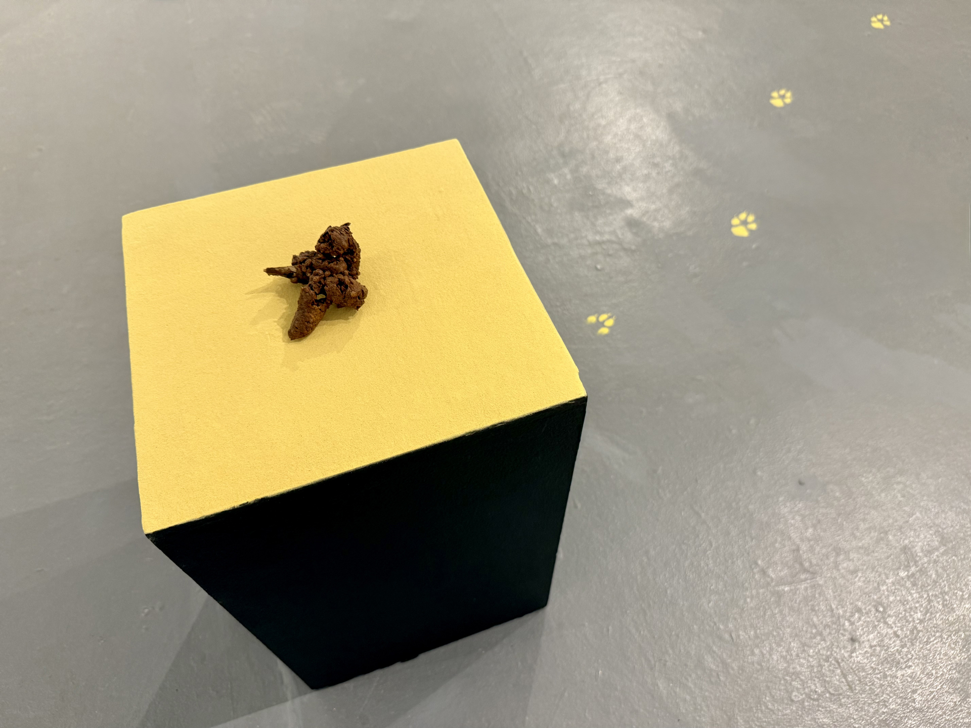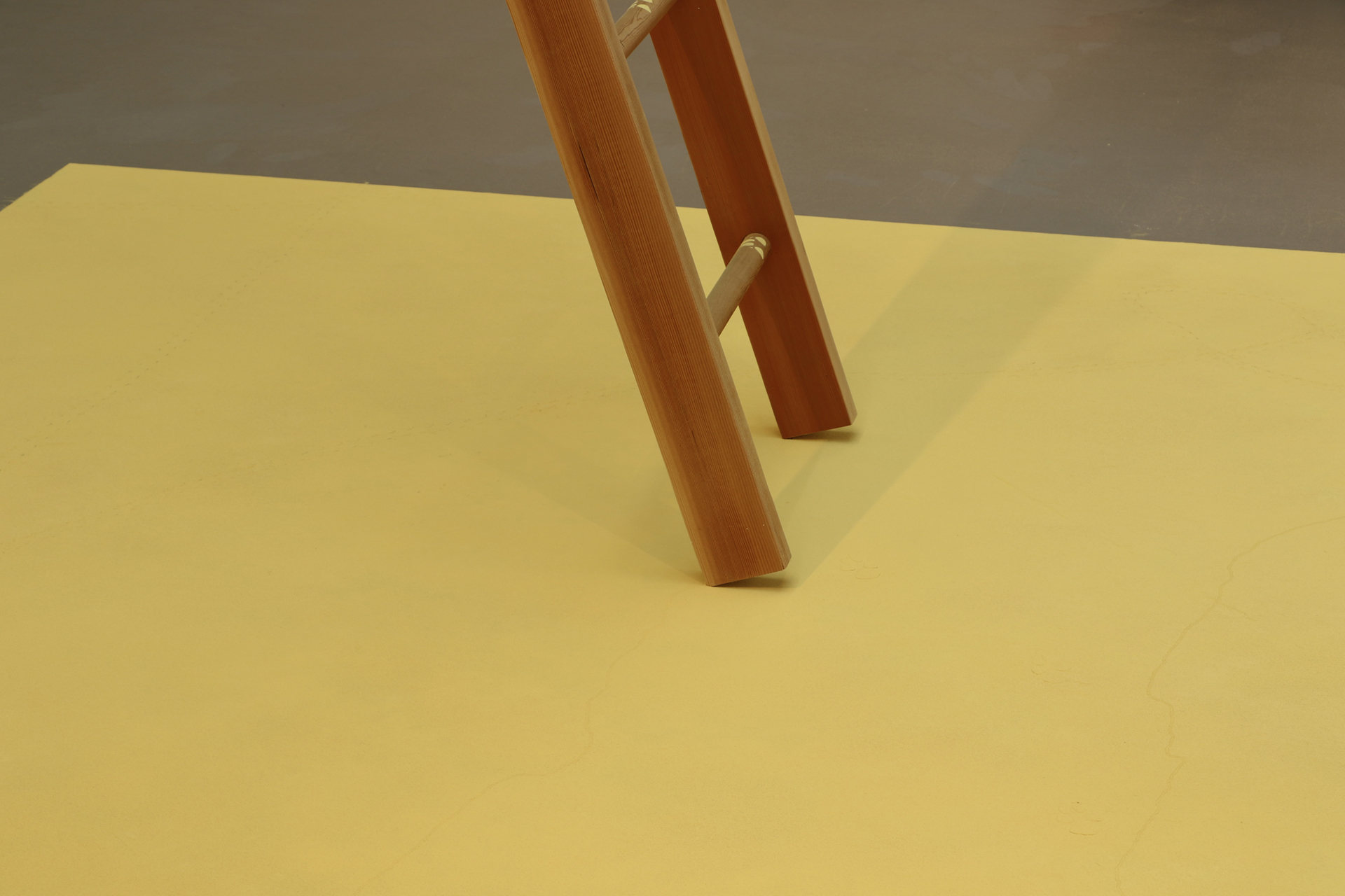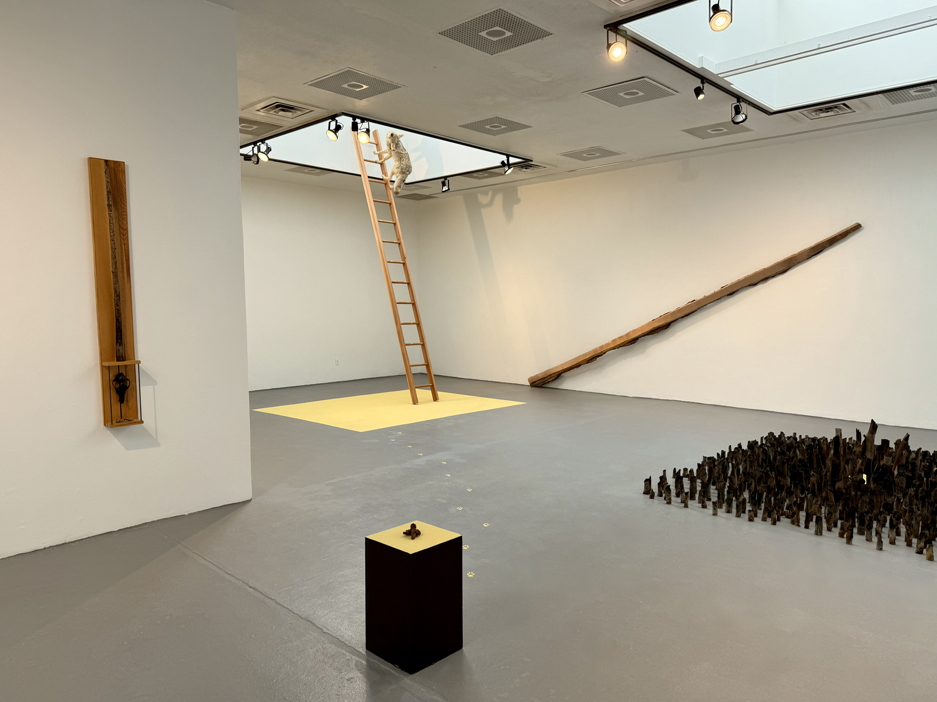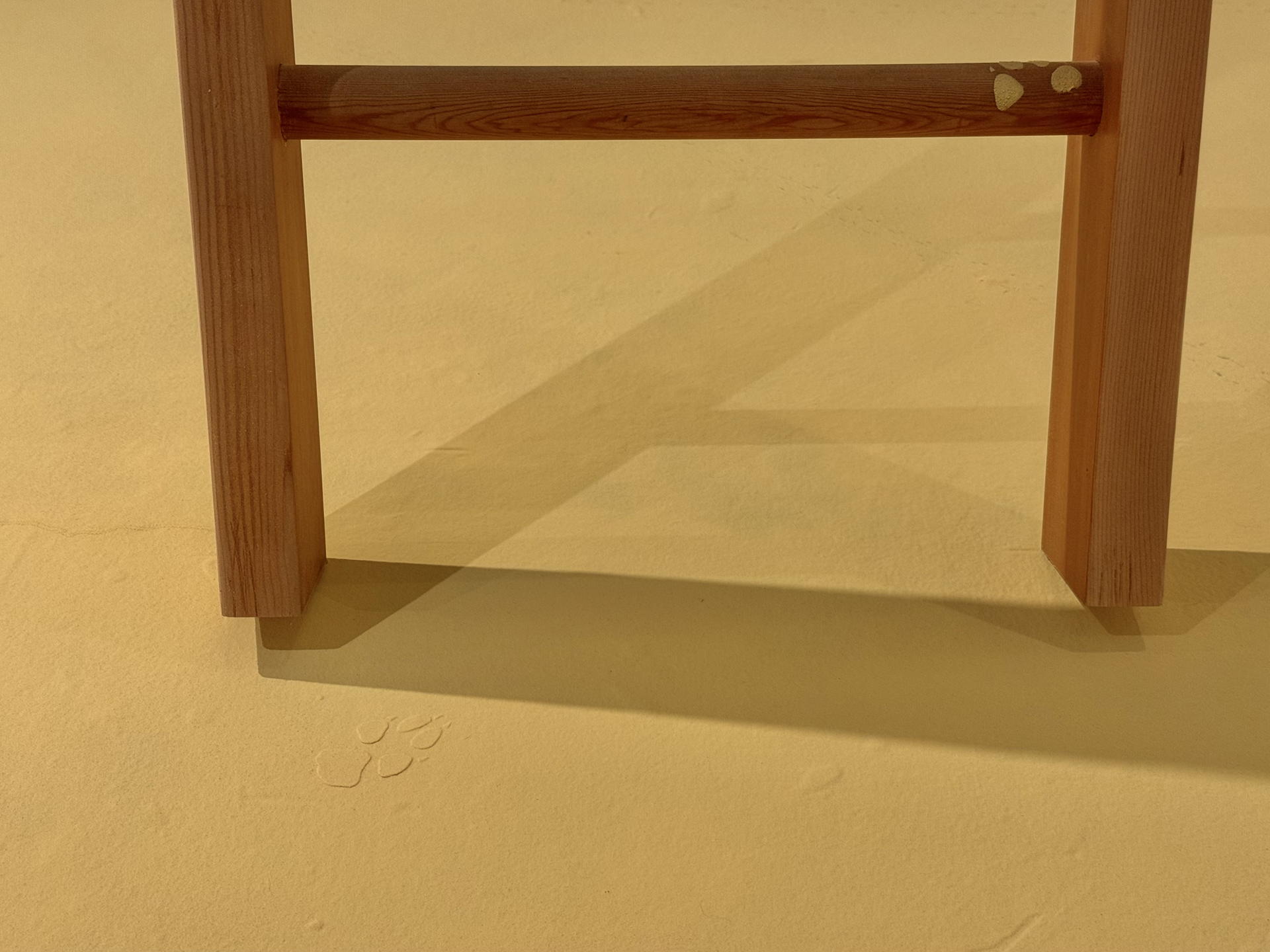 Materials: Wooden ladder, prepared coyote specimen and scat, pine pollen, paint, pedestal