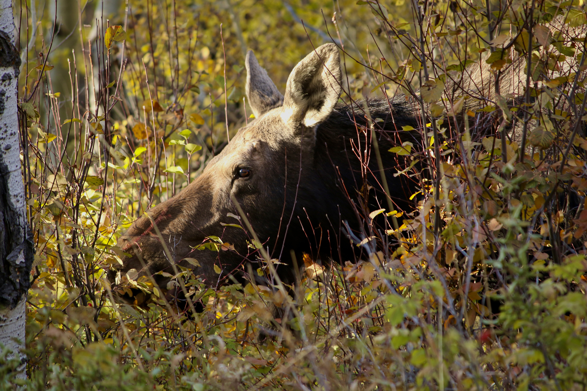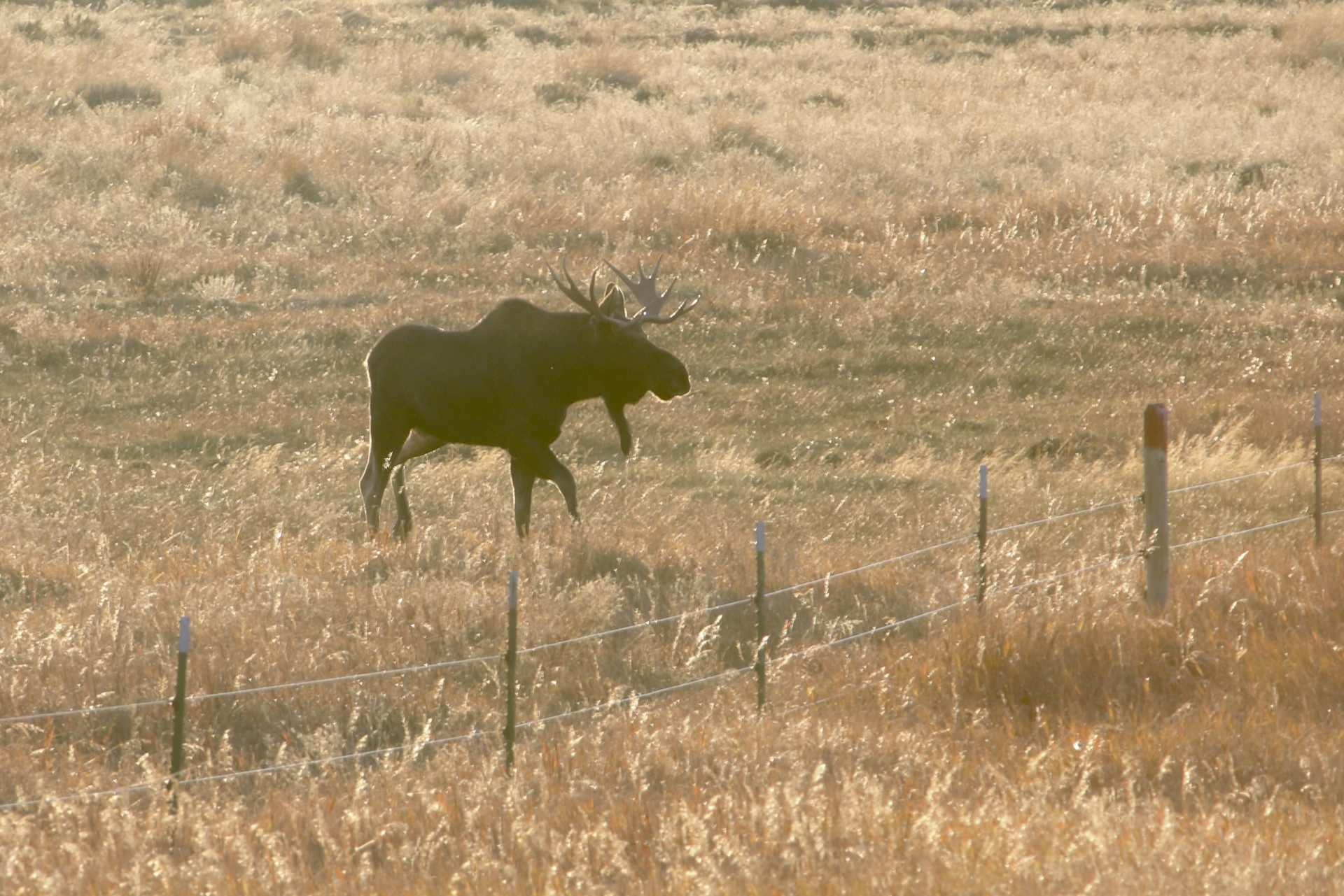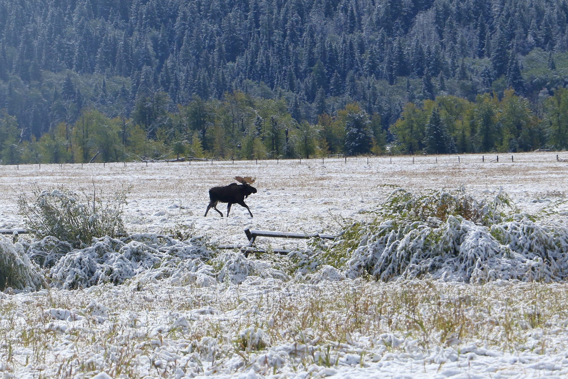 It snowed the first night of my residency in the Centennial Valley in Montana’s southern end of the Bitterroot Mountains. The cold front had dampened the historic 2017 Montana wildfires. The next morning snow covered the willows and grasses of Centennial Valley. I walked down the South Valley Road and crossed the field and entered the willow thickets that line Odell Creek. After an hour of slogging through wet willows, I headed back to my cabin. As I started back across the field, I looked up and there stood a huge bull moose stripping off willow leaves.
